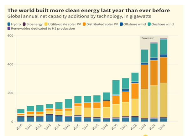 China added more renewable energy than any other country last year — 51% of the new solar power and 60% of the new wind power globally. China, the European Union, the United States and Brazil together accounted for 81% of new solar generation in 2023[3].