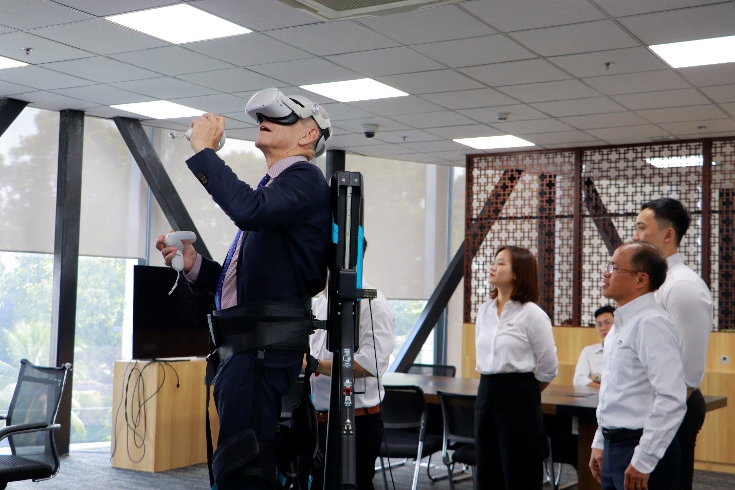 In addition, the team toured the Digital Capability Center (PECC2-DCC) and experienced a virtual reality demonstration that showcased PECC2’s state-of-the-art Scan-to-BIM technology, which enables engineers to explore virtual construction sites. The day concluded with a visit to the BESS system and PECC2’s Knowledge Space, where Prof. El Ghaoui expressed his excitement about the collaboration and appreciation for PECC2’s hospitality.